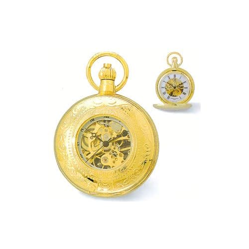 Charles-hubert  - Pocket Watch 17 JewelsSingle see through cover, 14kt gold-plated, black Roman numerals, mineral glass, 17 jewels Chinese skeleton winding movement, engraveable case. Case diameter 42mm. Curb chain, Belt clip, gift box, and warranty card all included.