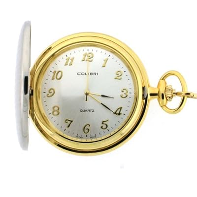 Colibri Pocket Watch w/ Cover Classic Design PMS095936W This stainless steel/ gold tone quartz pocket watch with cover features silver tone dial and easy to read numbers, quartz movement and engravable area on cover.
